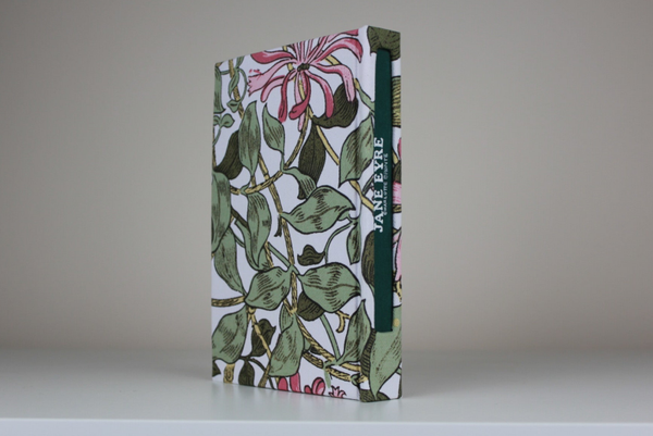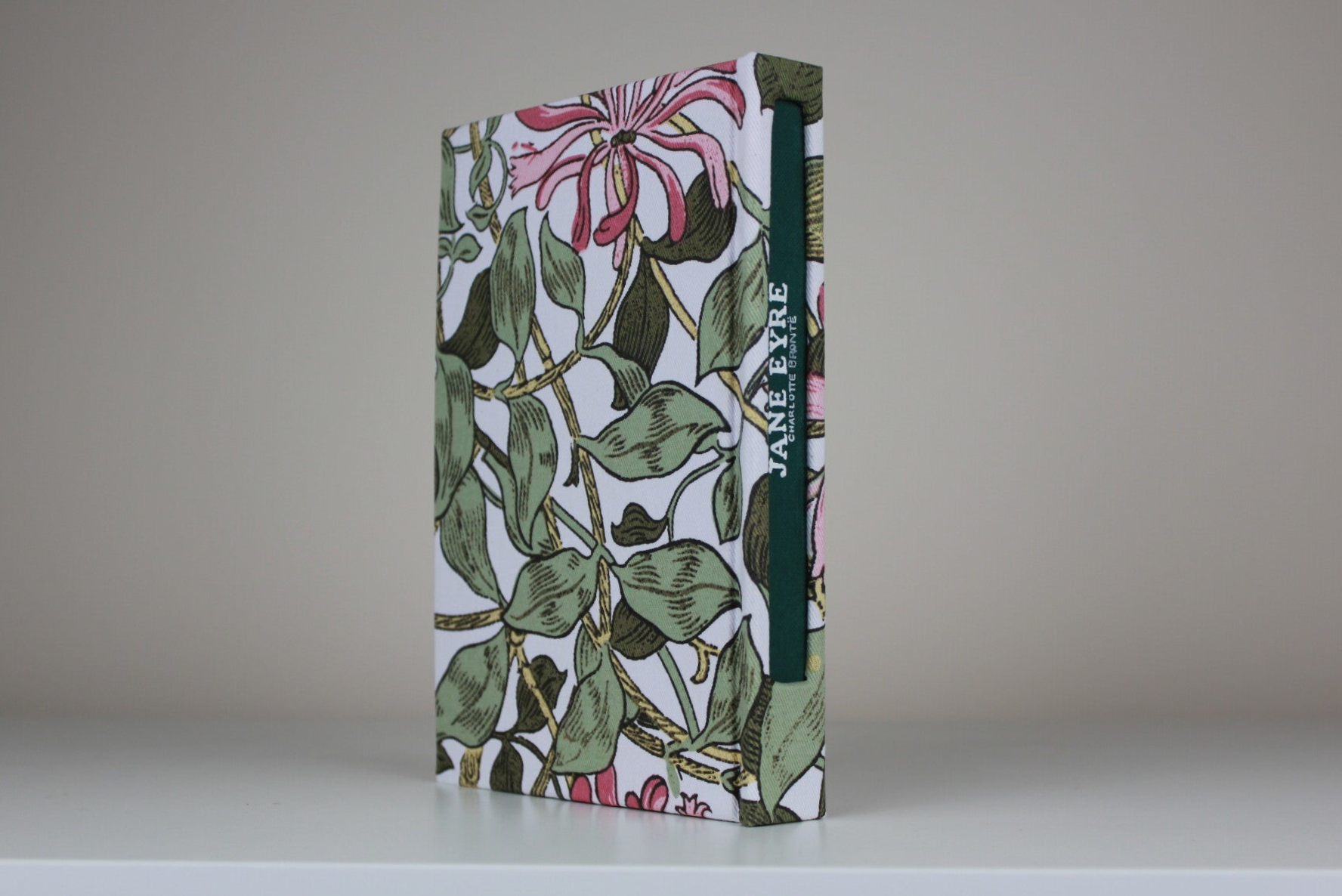Made to be cherished, this single-edition Jane Eyre rebind is covered in William Morris honeysuckle cloth, with LEOK designed endpapers in pink. The double ribbon bookmark whispers of literary evenings and quiet reading corners. It’s not just a book—it’s a story you live in your hands. Perfect for anniversaries, weddings, or moments when you seek beauty in every detail.